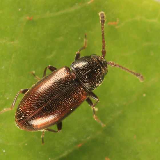 Τα ακμαία (σκαθάρια) έχουν μήκος 1 χιλ., χρώμα ανοιχτό καστανό στην αρχή, που σκουραίνει αργότερα και φέρουν ροπαλοειδείς, παχειές κεραίες.