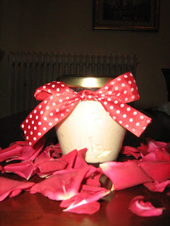 - 4 κουταλιές σούπας λάδι τριαντάφυλλου (το φτιάχνουμε μόνοι μας προσθέτοντας σε 1/2 κούπα ελαιόλαδο 1 φλιτζ. αρωματικά πέταλα τριαντάφυλλων και τα αφήνουμε για 4-5 μέρες σε δροσερό μέρος. Σουρώνουμε τα πέταλα και είναι έτοιμο το λαδάκι).