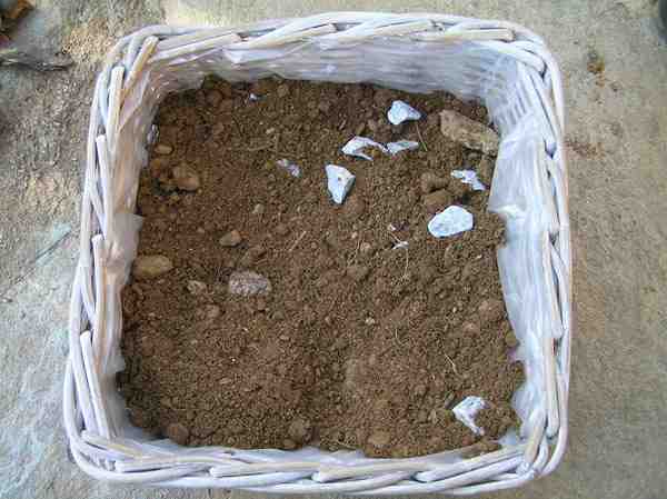 Για να έχουμε αρχικά καλή αποστράγγιση, θα πρέπει να τοποθετήσουμε στον πάτο χαλίκι. Αν δεν έχετε μπορείτε να βάλετε κομμάτια από κεραμίδι ή τούβλο.