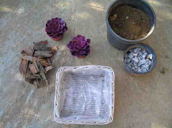Για να διακοσμήσετε το καλάθι, ώστε να μην φαίνεται το χώμα, μπορείτε να βάλετε φλοιό από δέντρο ή βρύα.