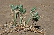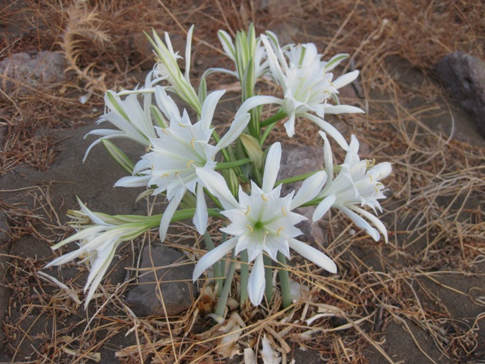 Αυτό το μονοκοτυλήδονο ποώδες πολυετές ανθίζει κατά τη διάρκεια των πιο ζεστών μηνών του καλοκαιριού. Μπορεί να αντέξει σε αυτές τις ακραίες συνθήκες, επειδή ο μεγάλος βολβός του (περίπου 5 - 7 εκατοστά πλάτος) είναι θαμμένος βαθιά στο υπέδαφος και αφού μεγαλώνει στην αμμουδιά, δεν είναι και τόσο δύσκολο για τους βλαστούς του να βρουν το δρόμο τους σε μισό μέτρο βάθος, μέσα από την χαλαρή παράκτια άμμο.