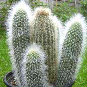 Cleistocactus-strausii.jpgCleistocactus strausii με καταγωγή από τη Βολιβία, κάτασπρα αγκάθια και άνθη σε χρώμα προτοκαλοκόκκινο έως κόκκινο της φωτιάς.