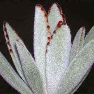 Κalanchoe tomentosa έχει χνουδωτά γκρίζα φύλλα με καφετιές τρίχες στην περίμετρο