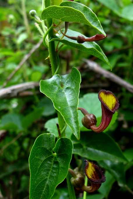 Είναι πολυετές, αναρριχητικό φυτό με φύλλα καρδιόσχημα και άνθη σφαιρικά στη βάση και στη συνέχεια σωληνοειδές σχήμα που πλαταίνει στο χείλος. Δεν έχει καθόλου πέταλα. Τα άνθη της έχουν επινοήσει ένα πολύ ιδιαίτερο, μηχανισμό γονιμοποίησης. Την πρώτη μέρα της ανθοφορίας κάθε άνθους εκπέμπεται ένα έντονο και δυσάρεστο άρωμα, με σκοπό να προσελκυστούν μικρά έντομα, δίπτερα όπως μικρές μύγες κ.α.