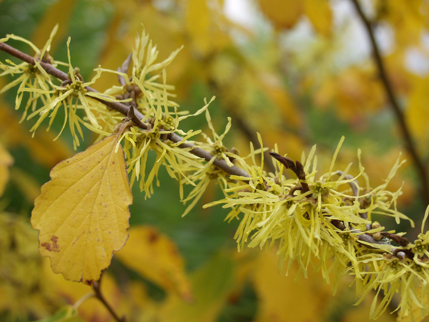 Το είδος Hamamelis japonica arborea, αρχίζει να δείχνει το χρώμα του πολύ πριν τα Χριστούγεννα, συνήθως ένα μήνα νωρίτερα και είναι στα καλύτερά του αυτό το μήνα. Αρωματίζει τον αέρα και φωτίζει μια σκοτεινή γωνιά. Πρωτοεμφανίστηκε στην ευρωπαϊκή καλλιέργεια το 1862 από το Γερμανό γιατρό, Phillip Franz Van Siebold (1796-1866) στη δεύτερη επίσκεψή του στην Ιαπωνία. Φυσικά, κέρδισε γρήγορα την εκτίμηση των κηπουρών και το 1881 βραβεύτηκε με πιστοποιητικό πρώτης κατηγορίας, το First Class Certificate, από το Royal Horticultural Society. Από τότε, το Hamamelis japonica arborea έγινε από τα αγαπημένα φυτά. Διαφέρει από το Hamamelis japonica επειδή έχει μακρύτερα κλαδιά που τα απλώνει σε μεγαλύτερη ακτίνα και σχεδόν οριζόντια. Τα άνθη του έχουν σχήμα λεπτής τιράντας, παράγονται σε αφθονία και έχουν χρώμα βαθύ κίτρινο με κόκκινους σαν αίμα, κάλυκες.