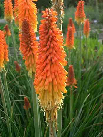 Τα περισσότερα είδη Kniphofia είναι αειθαλή, ενώ λίγα είναι φυλλοβόλα και βλασταίνουν ξανά στις αρχές του καλοκαιριού. Στη διάρκεια τής ανθοφορίας παράγουν πυκνή, ιθύφαλλο ανθοταξία (ταξιανθία επιμήκους σχήματος, καλυμμένη με άνθη χωρίς ποδίσκους), που σχηματίζεται πάνω από το επίπεδο των φύλλων, και αναπτύσσεται είτε το χειμώνα είτε το καλοκαίρι, ανάλογα με το είδος. Τα μικρά, σωληνοειδή άνθη εμφανίζονται σε αποχρώσεις τού κόκκινου, πορτοκαλί, κίτρινου και κρεμ. Αυτό προσδίδει και την ονομασία "torch" (πυρσός) και "red hot poker" (πυρωμένο σκαλιστήρι φωτιάς), σε πολλά από αυτά τα φυτά. (K. uvaria)