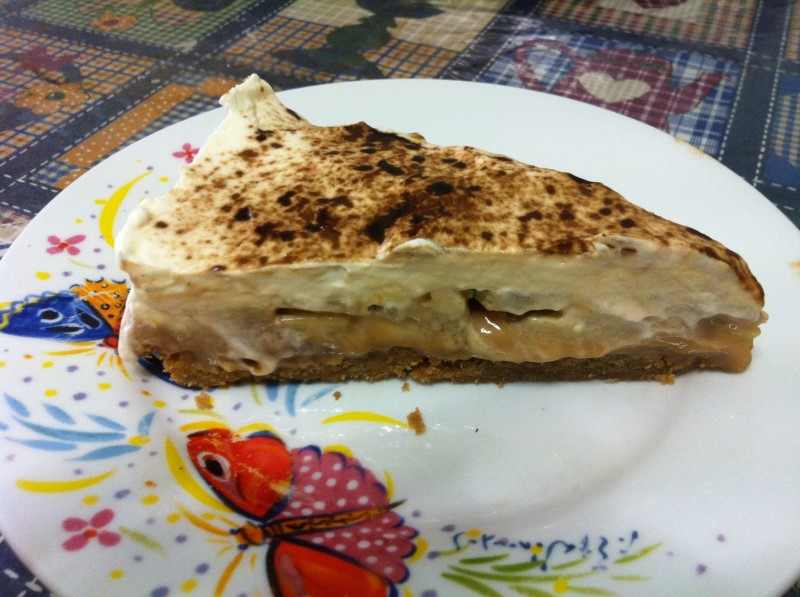 -Στη συνέχεια καλύπτουμε με τις μπανάνες που έχουμε κόψει σε φέτες. Χτυπάμε την κρέμα γάλακτος με την άχνη μέχρι να σφίξει και απλώνουμε πάνω από τις μπανάνες. Άλλη μια ώρα στο ψυγείο και πριν το σερβίρισμα πασπαλίζουμε με σκόνη καφέ ή σοκολάτα.