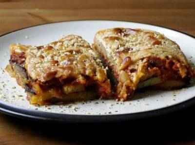 Στη συνέχεια, ερχόμαστε στο ταψί μας.Στρώνουμε μία σειρά πατάτες και ρίχνουμε με μία βαθιά κουτάλα λίγη απο τη γέμιση μας. Προσθέτουμε ύστερα λίγη φρυγανιά και λίγο κεφαλοτύρι.Κατόπιν τοποθετούμε μία σειρά μελιτζάνες.Επαναλαμβάνουμε το ίδιο,δηλαδή πατάτες,γέμιση, φρυγανιά, κεφαλοτύρι, μελιτζάνες, γέμιση, φρυγανιά, κεφαλοτύρι. Κανονίζουμε έτσι ώστε τα υλικά μας να φτάσουν για δύο σειρές πατάτες και δύο σειρές μελιτζάνες και τέσσερις σειρές στρώσεις με φρυγανιά, κεφαλοτύρι και γέμιση. Στην συνέχεια ψήνουμε στον φούρνο για περίπου 45 λεπτά. Καλή όρεξη.