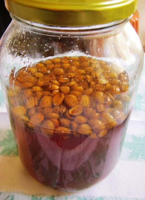 -Βάζουμε ξανά στο βάζο το ποτό, προσθέτουμε το κρύο σιρόπι, κλείνουμε το βάζο και το αφήνουμε σε σκιερό μέρος για άλλες 4 - 5 μέρες, ανακινώντας το τρεις - τέσσερις φορές.