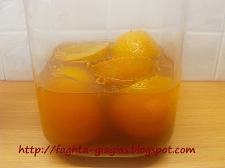 -Μετά τις 25 μέρες το ανοίγουμε, δοκιμάζουμε, κι αν μας αρέσει, το περνάμε από σουρωτήρι για να χωρίσουμε το υγρό από τα πορτοκάλια (αλλιώς τ᾿ αφήνουμε λίγες μέρες ακόμη).