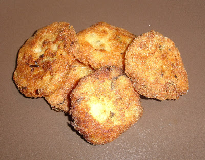 Πλάθουμε τα κεφτεδάκια, τα αλευρώνουμε, με μείγμα από αλεύρι και καλαμποκάλευρο για να γίνουν πιο τραγανά και τα τηγανίζουμε σε καυτό λάδι.
