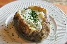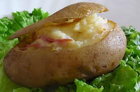 — Διαλέγουμε τέσσερις στενόμακρες πατάτες, τις πλένουμε καλά και τις ψήνουμε ολόκληρες με τη φλούδα τους στους 200ο C για μία ώρα περίπου.