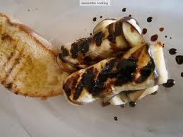 Βάζουμε πρώτα σ’ ένα κατσαρολάκι το βαλσάμικο όλο μαζί με τις κουταλιές του μελιού σε μέτρια φωτιά χωρίς να το πειράζουμε μόλις διαλυθεί το μέλι, μέχρι να μειωθεί η ποσότητα στο 1/3,και να συμπυκνωθεί το βαλσάμικο σε σιρόπι!!Το αφήνουμε στην άκρη και κόβουμε τη μελιτζάνα σε φέτες με ένα μαντολίνο και το τυρί σε μπαστουνάκια,ξεπυκρίζουμε τις μελιτζάνες βάζοντας τες σε αλάτι και ένα σουρωτήρι αφού τις ξεπλένουμε για μισή ώρα,και μετά τυλίγουμε τα ρολάκια.Τα ψήνουμε σε γκριλιέρα και σερβίρουμε με το σιρόπι και ψωμί.