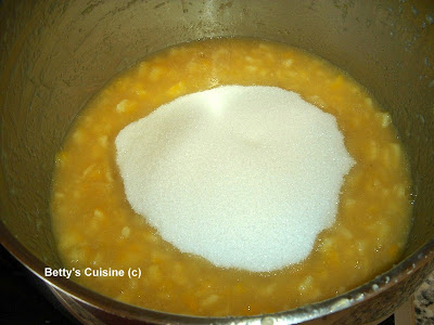 Με ένα φλιτζάνι μετράμε το περιεχόμενο της κατσαρόλας ~ όσα φλιτζάνια υλικό έχουμε, τόσα φλιτζάνια ζάχαρη θα προσθέσουμε για να φτιάξουμε την μαρμελάδα μας.