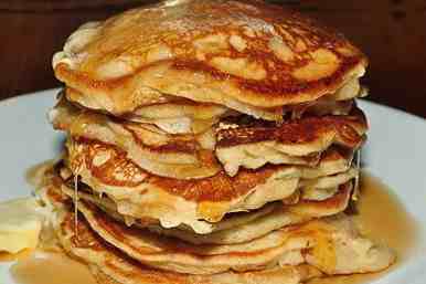 2. Βάζετε στη φωτιά ένα τηγάνι και προσθέτετε λίγο βούτυρο ή μαργαρίνη. Μόλις αρχίσει να λιώνει, αλείφετε με τη βοήθεια ενός χαρτιού κουζίνας, όλη την επιφάνεια του τηγανιού με το βούτυρο. Προσθέτετε μισή κούπα από τη ζύμη και την ψήνετε σε μέτρια προς χαμηλή φωτιά. Όταν όλη η επιφάνεια γεμίσει φυσσαλίδες, αναποδογυρίζετε την τηγανίτα με τη βοήθεια μιας σπάτουλας. Την ψήνετε και από την άλλη πλευρά, μέχρι να πάρει χρώμα χρυσό - καστανό. Την βγάζετε σε πιατέλα και συνεχίζεται με τον ίδιο τρόπο, μέχρι να τελειώσει η ζύμη.