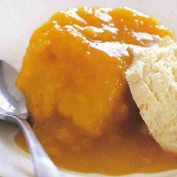 3. Για τη sauce βάλτε τη ζάχαρη και το χυμό πορτοκαλιού σε ένα σκεύος που μπαίνει σε φούρνο μικροκυμάτων. Μαγειρέψτε για 3 λεπτά στη μέση (50%) της ισχύς του φούρνου ανακατεύοντας ανά λεπτό μέχρι η ζάχαρη να διαλυθεί. Ανεβάστε την ισχύ στο μέγιστο (100%) και μαγειρέψτε για 1-2 λεπτά μέχρι το μείγμα σας να αρχίσει να βράζει. Χύστε τη ζεστή sauce στο πίσω μέρος ενός κουταλιού πάνω από την πουτίγκα, φροντίζοντας να ρέει έτσι ώστε να την καλύψετε ομοιόμορφα.