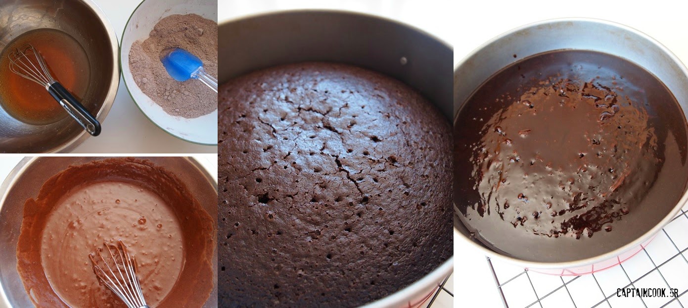 Όταν το κέικ είναι έτοιμο, το τρυπάμε παντού με οδοντογλυφίδα και περιχύνουμε με το σιρόπι.