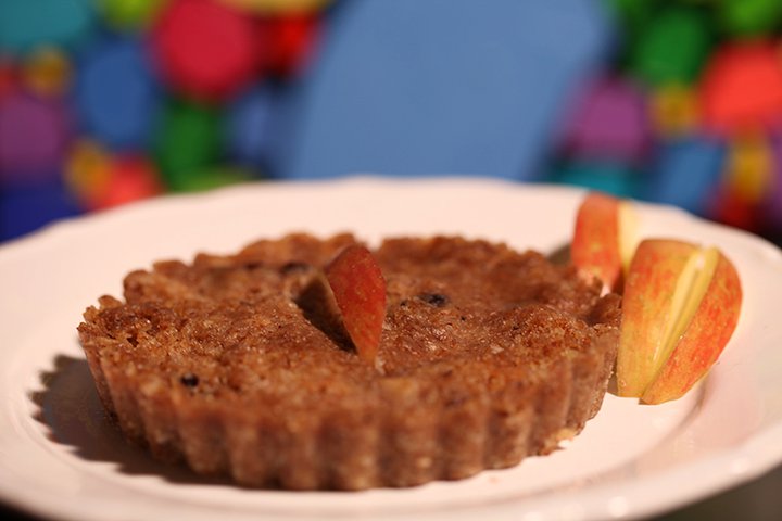 Κόβουμε σε λωρίδες τα μήλα και ανακατεύουμε σε μια λεκάνη με την κανέλλα, το σιρόπι αγάβης και τα χοντροκομμένα καρύδια καλά ώστε να αναμιχθούν καλά. Μετά, απλώνουμε πάνω από τη βάση της τάρτας. Στη συνέχεια, γαρνίρουμε με τα ολόκληρα καρύδια. Αφήνουμε στο ψυγείο για 2 ώρες και σερβίρουμε.
