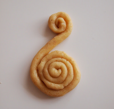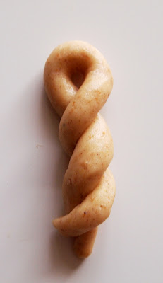 Αφού κρυώσει η ζύμη την χωρίζουμε σε δυο μέρη, ξανατυλίγουμε το ένα στην μεμβράνη και το βάζουμε στο ψυγείο. Ξεκινάμε να φτιάχνουμε τα κουλουράκια μας. Το κλασσικό σχέδιο είναι να κάνουμε ένα κορδόνι, να φέρουμε τις άκρες προς τα εμάς και να πλέξουμε μια πλεξίδα.