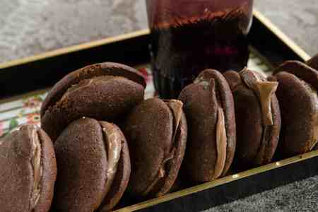 Whoopies γεμιστά με σοκολάτα. Ένα μαλακό μπισκότο με σοκολάτα είναι το τέλειο κέρασμα για τον καφέ αλλά και για τα πιτσιρίκια.