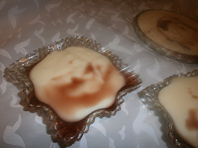 -Κατεβάζουμε με από την φωτιά, την βάζουμε με μία κουτάλα της σούπας σε μπολάκια, περιμένουμε λίγο να κρυώσει και γαρνίρουμε με το γλυκάκι μας και σερβίρουμε. Γίνεται ανάρπαστη !!
