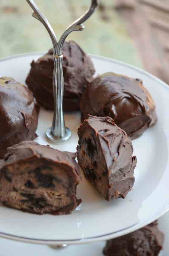 -Λιώνουμε τη σοκολάτα σε μπεν μαρί και ρίχνουμε τις τρούφες μέσα σε αυτό. Στη συνέχεια τις αφαιρούμε και τις αφήνουμε να σταθούν πάνω σε μια λαδόκολλα.
