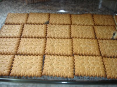 Απο πάνω βάζουμε μια στρώση κρέμας.Συνεχίζουμε με μπισκότα και κρέμα κάνοντας άλλες δυό στρώσεις.