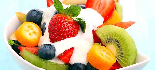 Περιχύνουμε τα φρούτα με την σάλτσα του γιαουρτιού και πασπαλίζουμε με καρυδόψιχα όταν το σερβίρουμε.