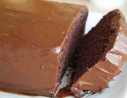 Κέικ σοκολάτας χωρίς αυγά Ένα πλουσιότατο και ζουμερό κέικ σοκολάτας, χωρίς αυγά, με πλούσια επικάλυψη.