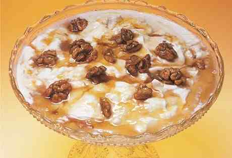 3. Σερβίρετε κάθε φέτα με μια κουταλιά μέλι και λίγα ψιλοτριμμένα καρύδια