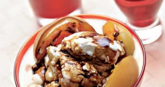 Ένας υπέροχος συνδιασμός το γιαουρτοπαγωτό με ροδάκινα.