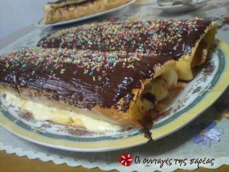 Ρολό με γέμιση κρέμας και επικάλλυψη σοκολάτας. Πανεύκολο και γρήγορο. Δοκιμάστε το!