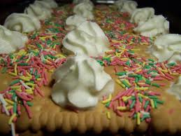 -Στολίζουμε το γλυκό μας με τρούφα χρωματιστή, στα σημεία που ενώνονται τα μπισκότα μεταξύ τους.
