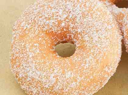-Σε ένα μπολ ρίχνετε 2 κούπες ζάχαρη και βουτάμε μέσα τα ντόνατς.