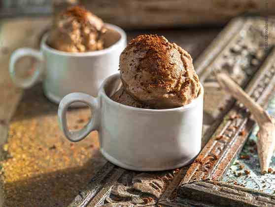 Παγώνουμε στο ψυγείο για 2 ώρες. Βάζουμε το μείγμα σε παγωτομηχανή. Αν δεν έχουμε παγωτομηχανή ακολουθούμε την κλασική μέθοδο με το χτύπημα - πάγωμα. Αφού ετοιμάσουμε τη βάση του παγωτού αφήνουμε να κρυώσει καλά. Παγώνουμε στην κατάψυξη μέχρι να αρχίσει ελαφρά να σταθεροποιείται το παγωτό και έπειτα ανά 30' το χτυπάμε με μίξερ χειρός να αφρατέψει καλά και το παγώνουμε στην κατάψυξη. Όσο πιο πολλές φορές επαναλάβουμε αυτή τη διαδικασία τόσο πιο αφράτο και χωρίς κρυστάλλους θα γίνει το παγωτό μας.