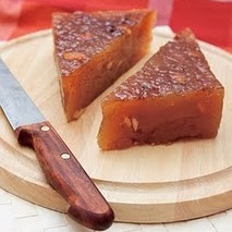Ρίχνουµε σε µια κατσαρόλα όλα τα υλικά εκτός από το 1 φλιτζάνι ζάχαρης και τους ξηρούς καρπούς. Βάζουµε την κατσαρόλα στη φωτιά και ανακατεύουµε συνεχώς µε ξύλινη κουτάλα να µην πιάσει.