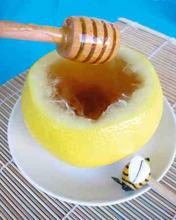 Παίρνουμε ένα μεγάλο λεμόνι ή γκρέιπφρουτ και κόβουμε το πάνω μέρος. Από εκεί αφαιρούμε όλο το εσωτερικό του. Βράζουμε το τσάι μας, προσθέτουμε μέλι και λίγο από τον χυμό του λεμονιού και το σερβίρουμε… μέσα στο λεμόνι!