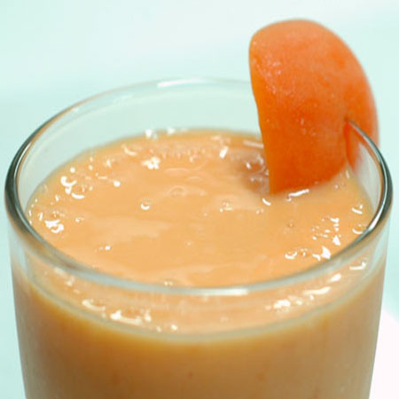 Ανοίγετε τα βερίκοκα στα δυο και βγάζετε το κουκούτσι. Το ίδιο κάνετε και με το ροδάκινο. Κόβετε τα φρούτα σε κομμάτια και βάζετε όλα τα υλικά μαζί στο μπλέντερ και τα χτυπάτε σε δυνατή ταχύτητα.