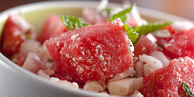 Σαλάτα με κοτόπουλο, καρπούζι και ροκφόρ