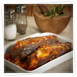 Αλείψτε με λίγο ελαιόλαδο ένα μέτριο ταψί βάλτε τις μελιτζάνες μέσα με το άνοιγμα προς τα επάνω ανοίξτε τις και γεμίστε μέσα με το τριμμένο κασέρι Περιχύστε τη σάλτσα από επάνω τους και ψήστε σε φούρνο προθερμασμένο στους 170ο για 10-15 λεπτά έως ότου λιώσει το τυρί και κάνει κρούστα.