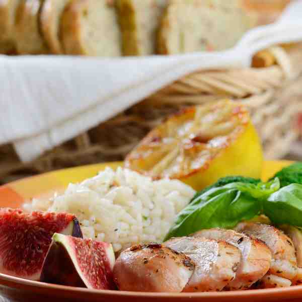 Πολύ ωραίο και καλοκαιρινό πιάτο το στήθος κοτόπουλου με σύκα και ροδάκινα