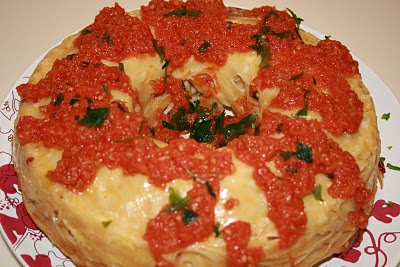Χυλοπίτες σε φόρμα, με κόκκινη σάλτσα