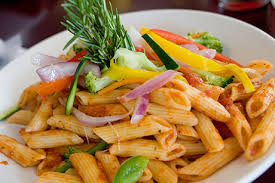Εν το μεταξύ, έχουμε βράσει τα ζυμαρικά σε αλατισμένο νερό. Τα ρίχνουμε στη σάλτσα, προσθέτουμε λίγο νερό ζυμαρικών και λίγο ελαιόλαδο. Ανακατεύουμε κι όλα μαζί τα ρίχνουμε στο ταψί με τα λαχανικά. Ανακατεύουμε πολύ καλά και σερβίρουμε αμέσως. Περιχύνουμε με λίγη κρέμα βαλσαμικό.