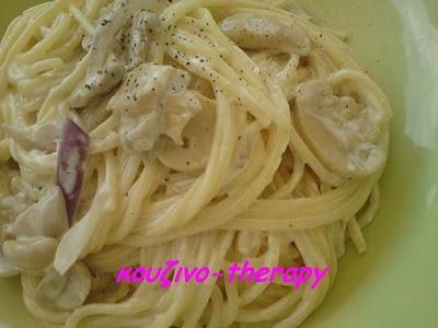 Μια απλή μακαρονάδα, με κρέμα γάλακτος και μανιτάρια. Εύκολη και νόστιμη.