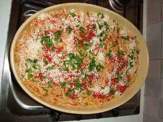 Πολύ νόστιμο πιάτο από την Ιταλία κα όπως συμβαίνει με όλες τις παραδοσιακές τοπικές συνταγές μπορείτε να προσθέστε υλικά (μερικές μαύρες ή πράσινες ελιές και κάπαρη ) και να χρησιμοποιήσετε πεκορίνο αντί για το τυρί παρμεζάνα. Δοκιμάστε αυτή τη συνταγή και στη συνέχεια διασκεδάστε ή να εφεύρετε τη δική σας παραλλαγή.