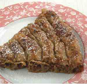 7. Αλείφετε την πίτα με λάδι και την ψήνετε στους 180οC για 45 λεπτά. Την πασπαλίζετε με ζάχαρη άχνη και λίγη κανέλα.