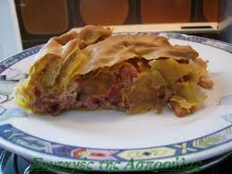 -Ανακατεύουμε στο μίγμα τις ελιές αφού βγάλουμε τα κουκούτσια και τις ψιλοκόψουμε και το ανθότυρο και το απλώνουμε στο ταψί.
