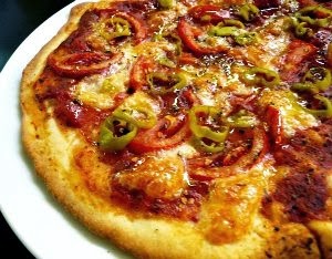 Νόστιμη σπιτική πίτσα με ελαιόλαδο, φρέσκια ντομάτα, ρίγανη και πιπεριές. Μην παραλείψετε τη φρέσκια ρίγανη στο τέλος, η σπιρτάδα της δένει θαυμάσια με τη γλυκιά ντομάτα και ταιριάζει στις ομοϊδεάτισσες πιπεριές, κι αν σας αρέσουν τα ελαφρώς πικάντικα, μπορείτε να προσθέσετε είτε στη σάλτσα μια μικρή καυτερή πιπερίτσα είτε μια πρέζα μπούκοβο πριν το ψήσιμο.