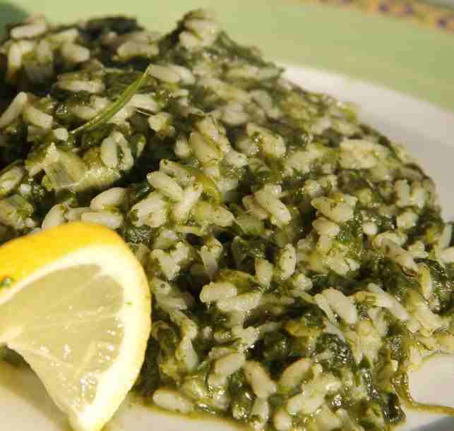-Μόλις πάρει μια βράση το σπανάκι και “καθίσει” ρίχνουμε το ρύζι.