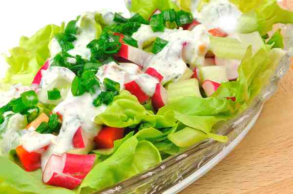 Πολύ νόστιμη και δροσερή η σαλάτα με γιαούρτι και λαχανικά. Την φτιάχνετε πολύ εύκολα και έχει πολλά θρεπτικά συστατικά.